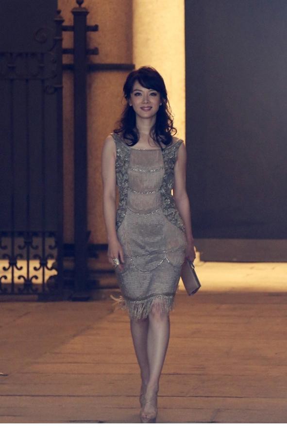 对于当时首次征战国际时装周的陈数而言,这无疑是一次重要的亮相。尽管在国内影视圈早已是备受肯定的实力派,但在国际时尚舞台,她仍被视作一位“新人”。然而,她以绝对从容的姿态化解了这份挑战。这条裸色裙装,运用了品牌标志性的雪纺、流苏与珠片元素,通过精巧的编织与悬垂设计,营造出丰富的层次与动感。裸色贴近肤色,温柔而高级,不仅衬托出她白皙的肌肤,更与她沉静内敛的气质相得益彰。半透视的面料与摇曳的流苏结合,行走间肌肤若隐若现,为整体成熟优雅的韵味平添了几分恰到好处的性感风情,被盛赞“优雅似女神”。